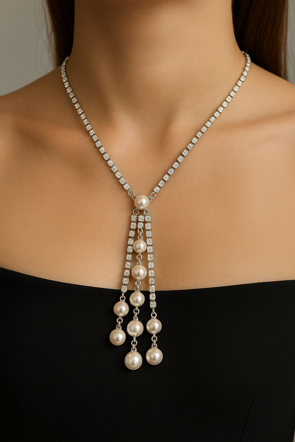 Elegance Cascade Pearl & Crystal Drop Necklace